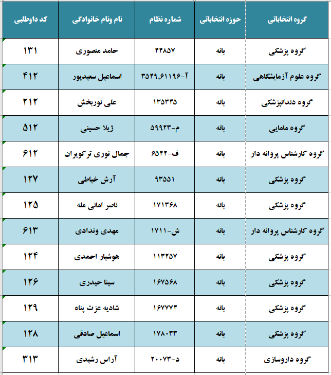 "لیست نهایی کاندیداهای نهمین دوره انتخابات سازمان نظام پزشکی "