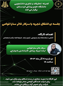 عنوان کارگاه: معارفه کمیته تحثیقات و فناوری دانشجویی دانشکده پیراپزشکی
