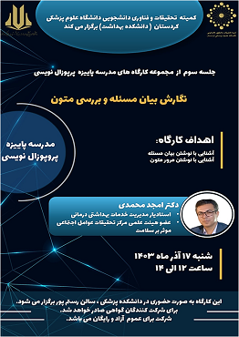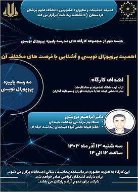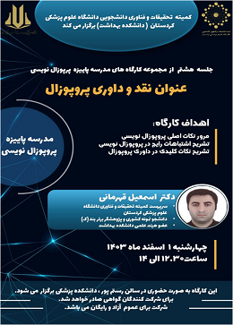 عنوان کارگاه: اهمیت پروپوزال نویسی و آشنایی با فرمت های مختلف آن