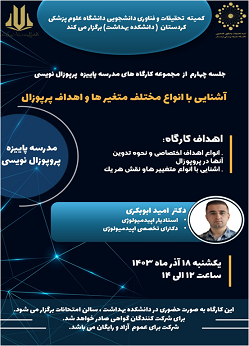 عنوان کارگاه: آشنایی با انواع مختلف متغیرها و اهداف پروپوزال