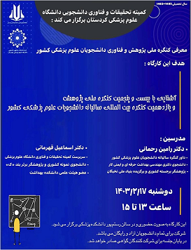عنوان کارگاه: معرفی کنگره ملی پژوهش و فناوری دانشجویان علوم پزشکی کشور