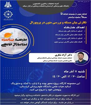 کارگاه آموزشی ((نگارش بیان مسئله و بررسی متون در پروپوزال))