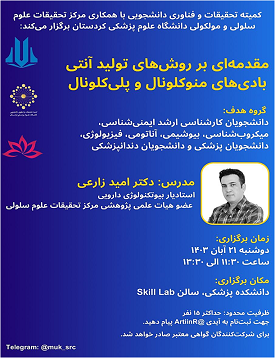عنوان کارگاه: مقدمه ای بر روشهای تولید آنتی بادی های منوکلونال و پلی کلونال